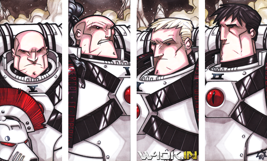 Слева-направо: Хорус Аксиманд, Эзекиль Абаддон, Гарвель Локен, Тарик Таргаддон